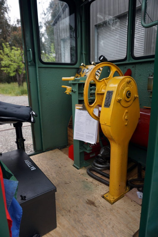 During the winter of 2018 The gasoline engine was replaced with a diesel and air brake controls and pump were added to allow State air braking requirements for the passenger train. In 2020 then engine was renumbered #581.